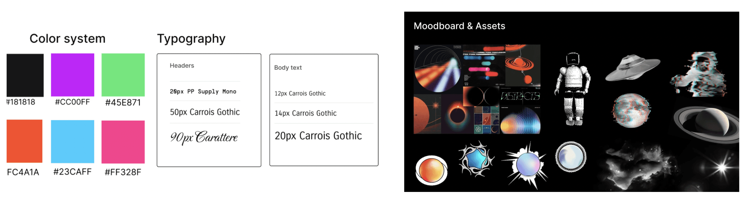 After finalizing our theme and conducting user research, we developed our brand guide. Our visual identity is inspired by a futuristic space aesthetic infused with vibrant, energetic reds and neons, evoking the feeling of movement, depth, and digital distortion.