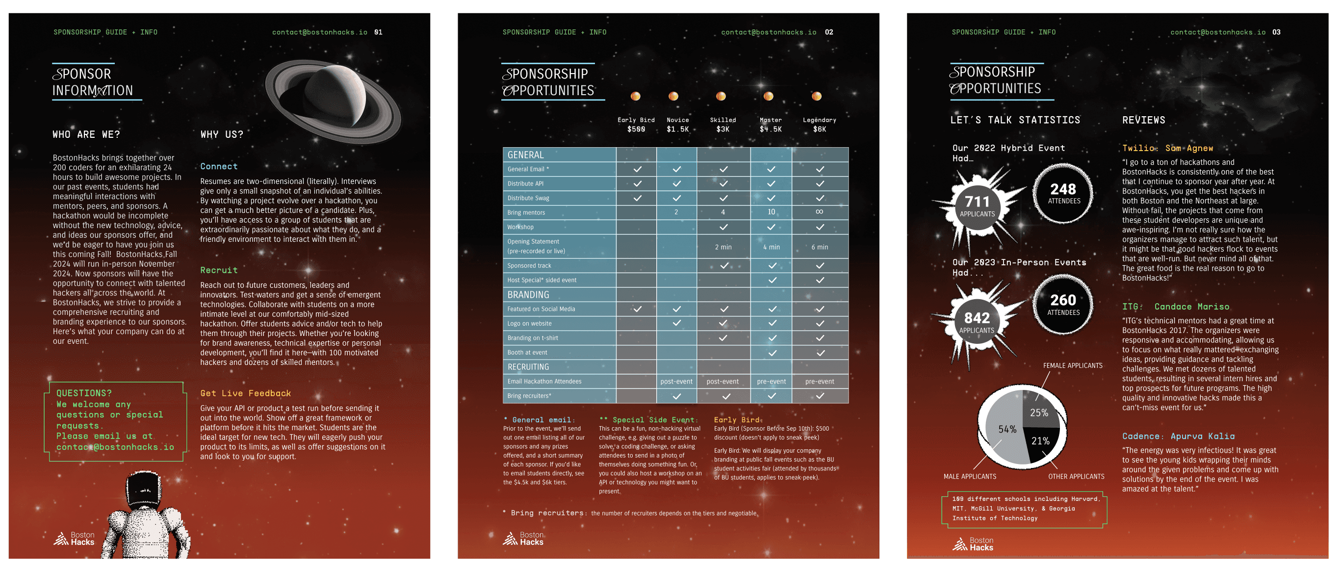 Using the information our sponsorship recruiter sent, I designed the sponsorship packet, applying the "Interstellar Innovation" theme and brand guide to it. Our final packet contributed to securing $5,000+ in funding from various organizations.
